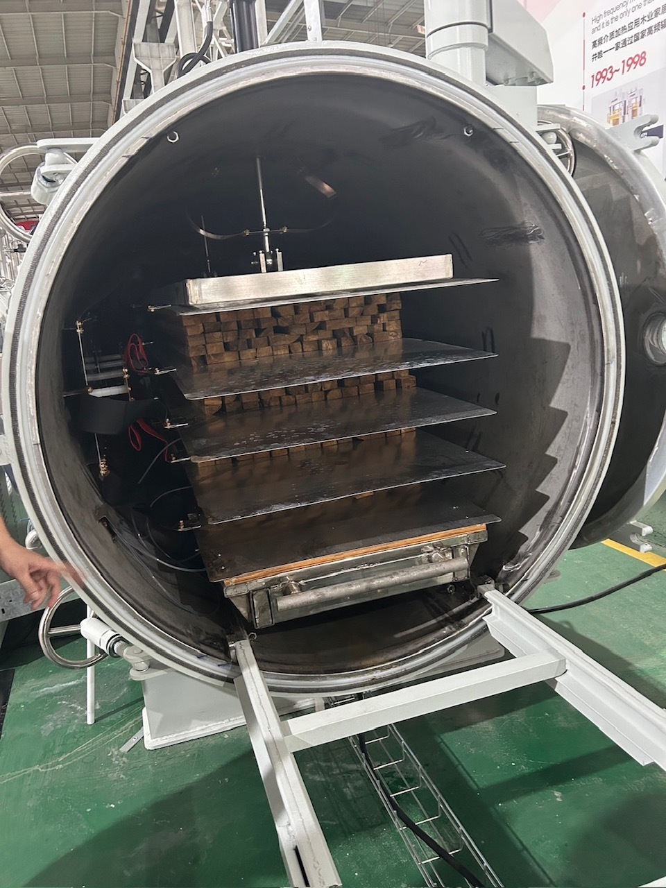 木材真空乾燥機を導入しました令和7年8月に中国にて検収・視察を行った木材真空乾燥機を試験的に導入し、仙台港工場にて稼働を始めました。